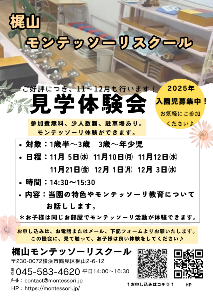 モンテッソーリ教育にご興味のある方。見学にいらっしゃいませんか?